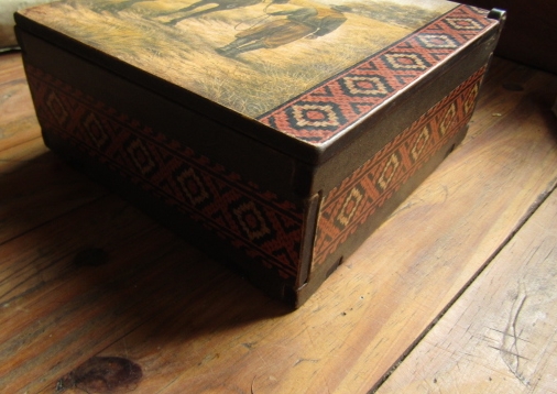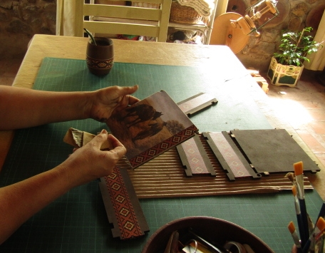 Los cofres se realizan en MDF cortado a láser y se intervienen mediante decoupage editorial, pátina manual y lustrado final. El envejecido no imita el paso del tiempo: lo evoca.