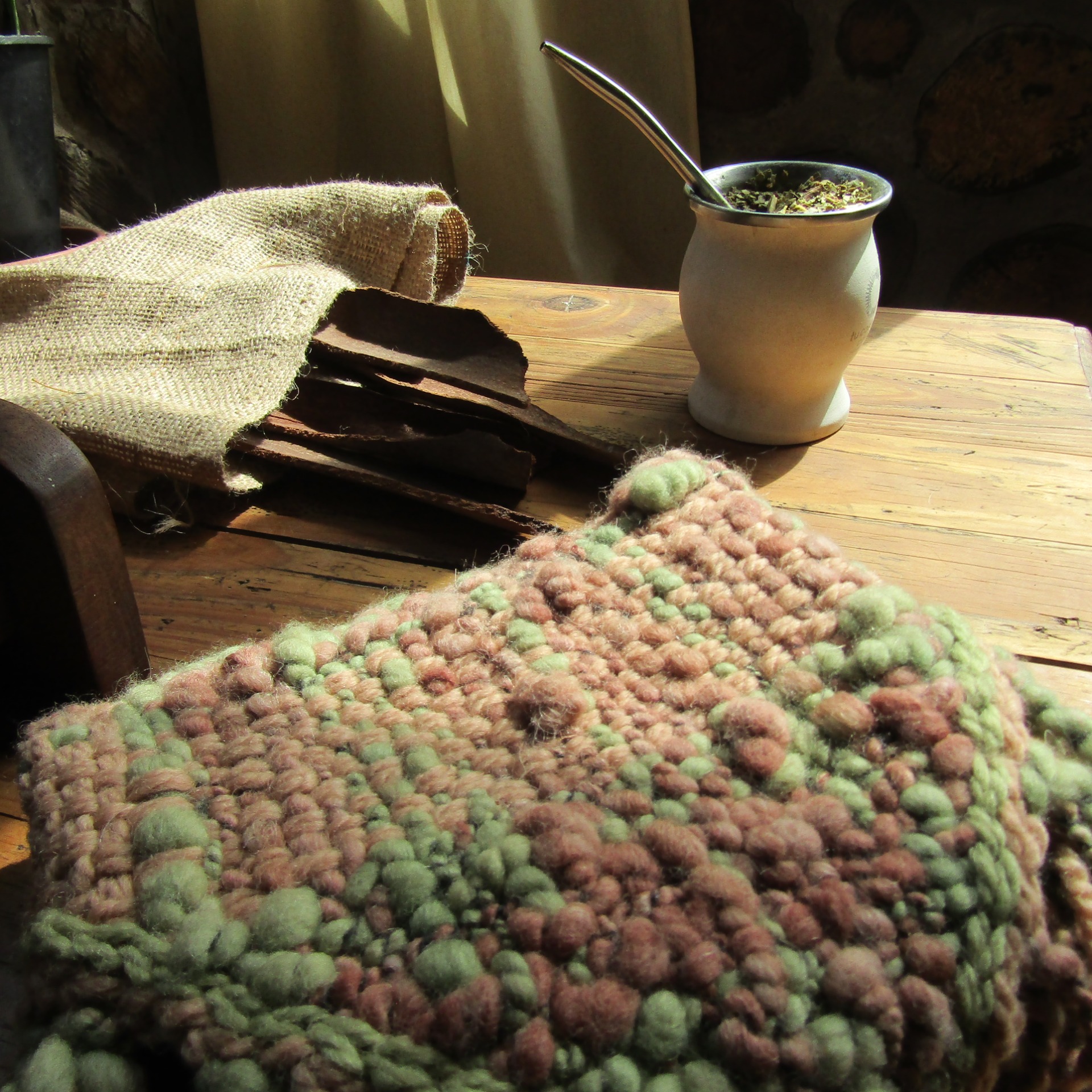 Together, they create on the wool a subtle interplay of green and pink, reflecting both the nature of La Pampa and its everyday rituals.