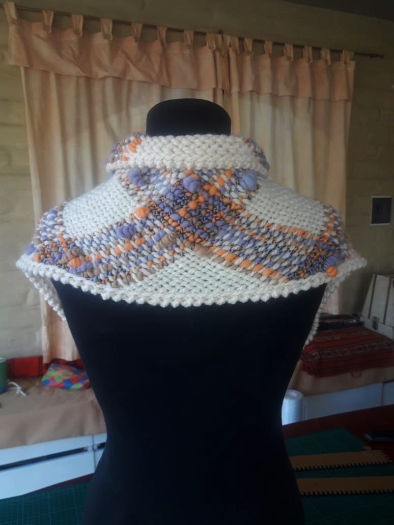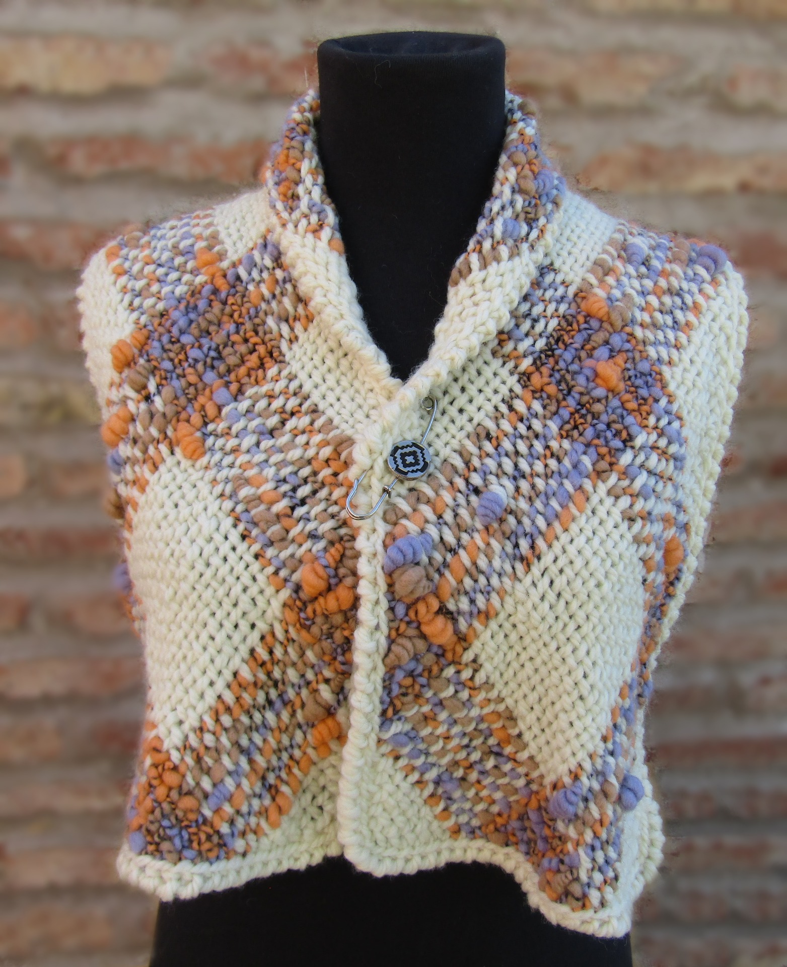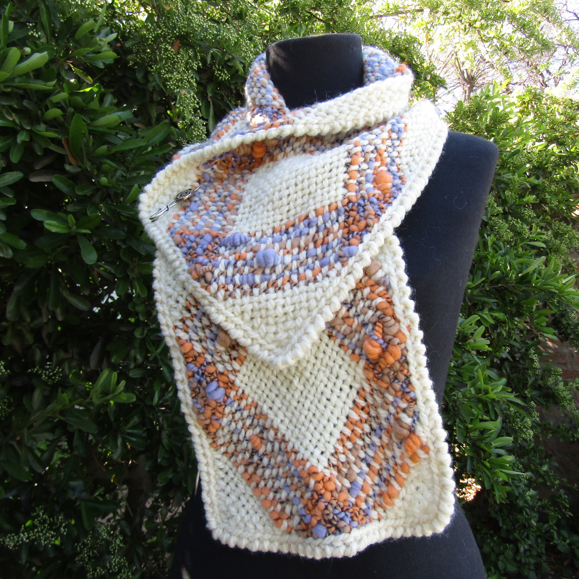 Wear it crossed in front with a pin, wrapped as a scarf, as a cowl, or draped as a mini cape.